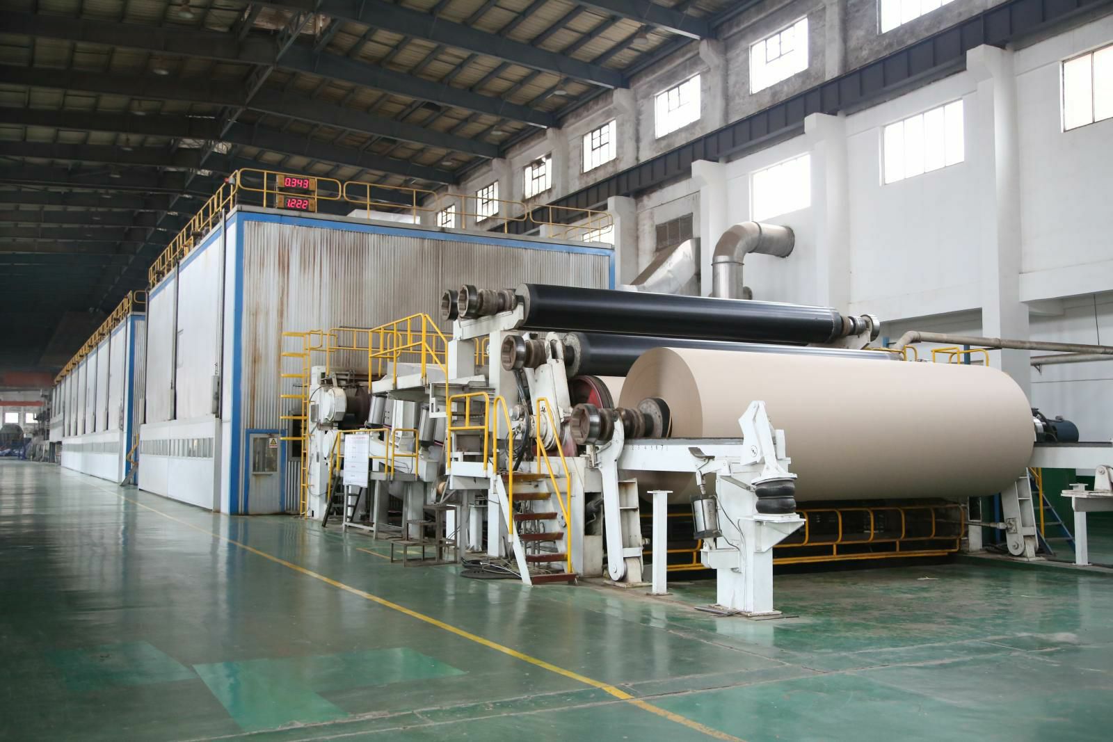 PM5造纸生产线,纸机是美卓(芬兰)制造的先进造纸设备,幅宽6.6米,设计车速1200米/分,目前运行最高车速已达1250米/分。主要生产90-220克的挂面箱板纸,年产量45万吨,带领澳门大阳城(集团)有限公司官网开启了包装纸生产的新纪元。